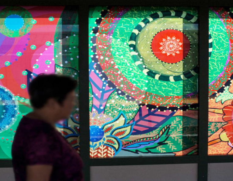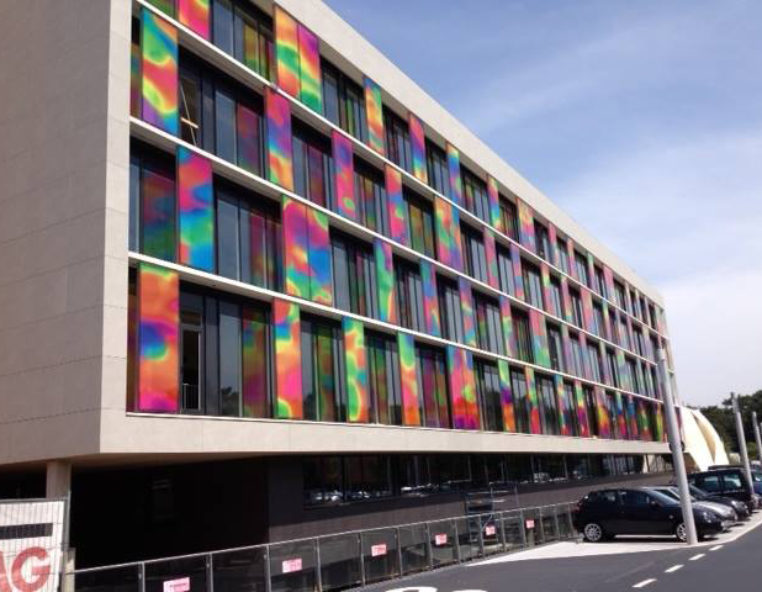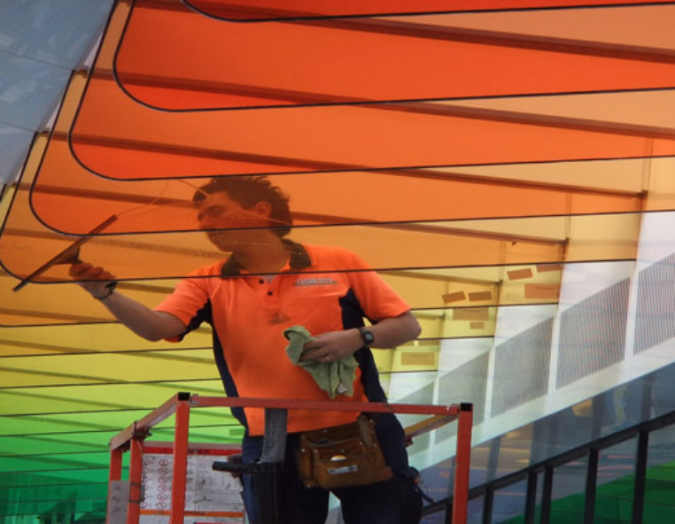 The Montage Graphix Insert (MGI) is a custom printed PET for encapsulation within custom laminated safety glass. Using transparent inks, unlike other printing methods, high colour vibrancy and saturation are easily achievable, translating to a more impacting print reproduction. Also, MGI is compatible with a range of glass lamination interlayers, and therefore a range of lamination methods, including either autoclave or autoclave free, providing few restrictions to working with the product. MGI is uniquely different to other generic printed PET inserts or interlayers, and time has shown that you can have peace of mind about the durability and stability of the product, having been used in a wide range of applications to date.